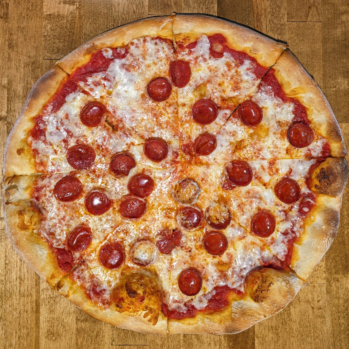 Very tasty NY Style pizza, with reasonably priced slices. The boys both really enjoyed the meatballs and the garlic bread was very good as well! If you are wanting to get some NY style pizza, I definitely recommend this place. The vibe here is very awesome as well, with it having a very nice bar along the one side of the restaurant and 5 TVs that are thoughtfully placed. It is counter serve, so order at the counter and then take a seat and they bring the food to you. They even have a “Date Night” offering where you get a large pizza, a bottle of Dom Perignon and your picture on the wall!!!! There was one picture up there when we went. Would be pretty cool to be on the wall!!! Patio was not set up when we went because it was supposed to rain, so will have to check that out next time! Bar had a great bourbon selection and most draft beers were $7.50, with Mich Ultra at $4.50. Staff were all super nice! Parking was not bad when we went, but I bet it could get crazy on a Friday night if a lot of people are getting pizzas. If this place was closer to home, I would definitely be a regular here!